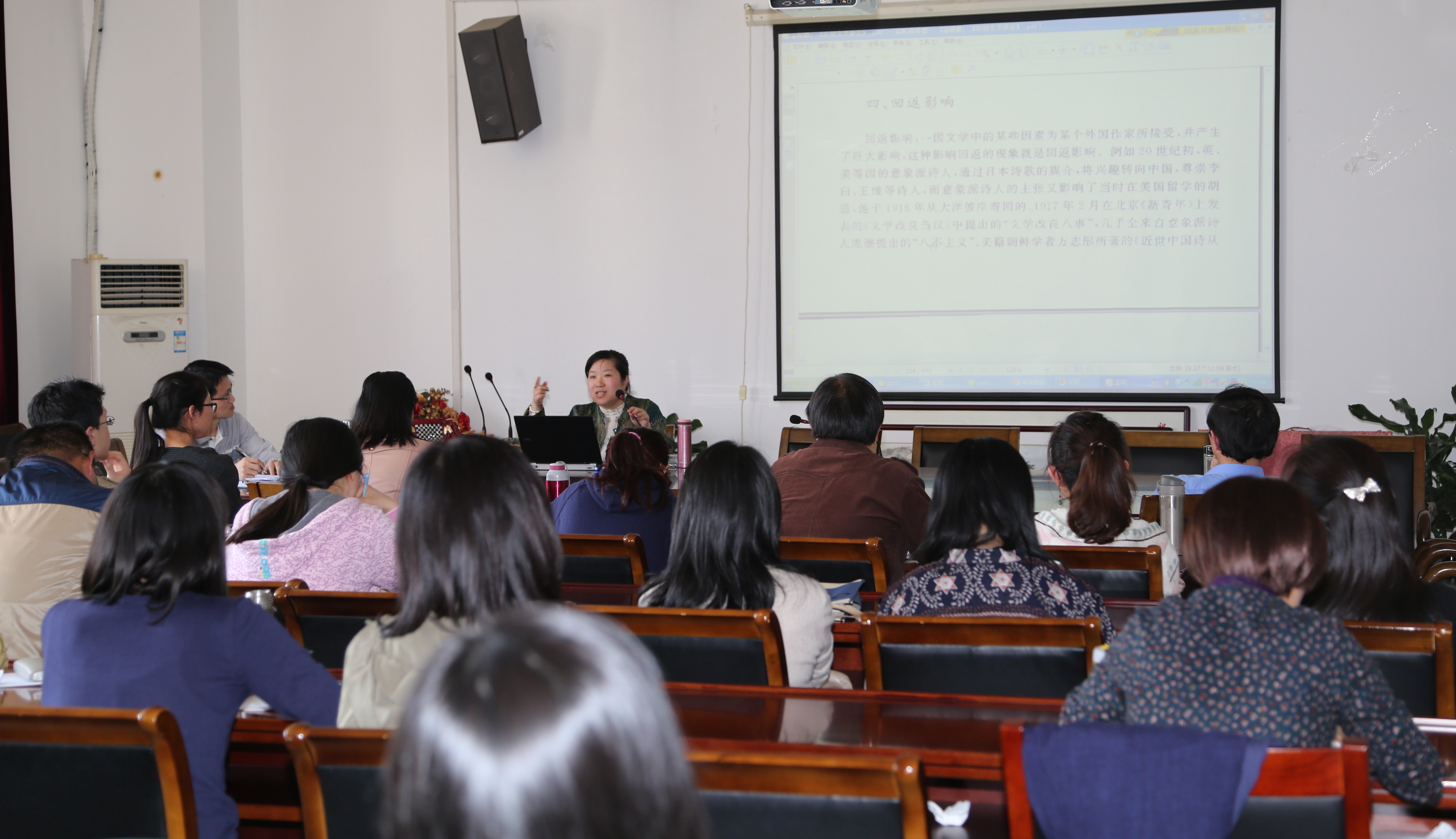 423日下午,2015年度外语博士学术沙龙第二期在我院大会议室如约而至。我们很荣幸地邀请到了张俊萍博士作为主讲人,文学与文化研究团队负责人、副院长方文开教授作为点评嘉宾。我院20多名教师与部分研究生参与了此次活动。