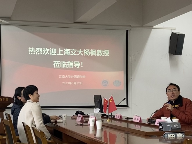 杨枫教授的讲座结束后,谢竞贤副院长做了点评,并就知识翻译学对新文科建设的启示、翻译的真善美标准等问题与杨教授交换了意见,同时表示期待杨教授以知识翻译学为学术平台对江南大学开云手机登录入口的翻译学科建设给予支持与指导。随后,杨教授与陈伟教授、杨勇教授及学生进行了互动交流,细致耐心地解答了师生提出的各种问题,让师生受益匪浅。