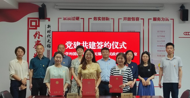 双方签订《江南大学开云手机登录入口与无锡市外办共建协议》《江南大学开云手机登录入口党委与无锡市外办党委共建协议》《开云手机登录入口英语系支部、研究生支部—市外办翻译支部共建协议》。