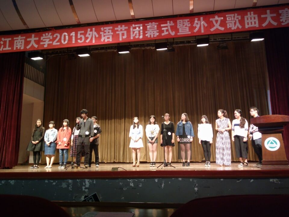 2015年10月14日下午,江南大学2015外语节闭幕式暨外文歌曲大赛在南区学生活动中心隆重举行。出席本次闭幕式的领导、嘉宾有校教务处副处长杨延、校学工部副处长张海峰、校团委副书记魏珍吉、研究生院副院长谢卫忠、开云手机登录入口党委书记黄城芳。开云手机登录入口教师代表、各学院学生代表以及开云手机登录入口全体学生参加了本次活动。闭幕式由学院党委副书记赵莹主持。