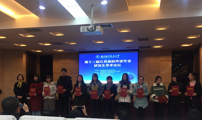 2017年12月8至10日,由江苏省高等学校外语教学研究会和江苏省高校外语专业研究生学术论坛组委会主办,南京航空航天大学开云手机登录入口承办的第十二届江苏高校外语专业研究生学术论坛在南京航空航天大学举行。省内高校160余名博士、硕士研究生及其领队教师汇聚一堂,我院16级研究生马小越、邱思佳、孙培培、王坤淼、谢婷婷、余婷婷、张芮和17级研究生潘婧在朱义华副院长的带领下参加了此次论坛。