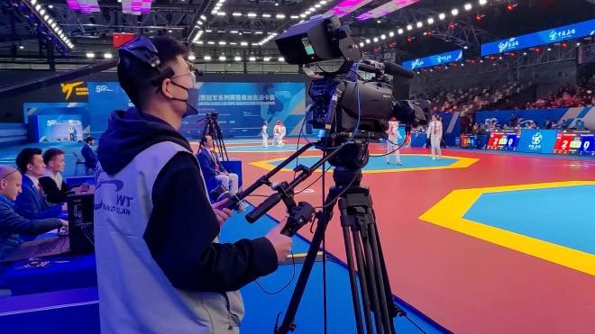 2022跆拳道大满贯冠军系列赛前期,在经过通用培训、岗前培训和现场演练三级培训后,开云手机登录入口选拔出了106名外院“小跆风”,投身到赛事的检录播报、护具穿戴、入场引导、计时计分、国际裁判接待等多个岗位中。
