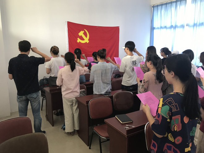 2018年6月27日下午,开云手机登录入口在A433举行2018年新党员入党宣誓仪式。参加本次入党宣誓仪式的有院党委书记黄城芳、党委秘书许广玉、分团委书记杨艳、辅导员张圆、黄颖以及2018年全体新党员,仪式由杨艳主持。