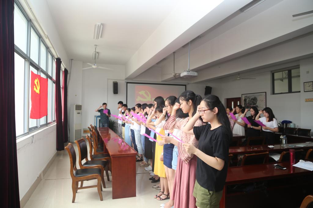 2017年6月21日下午2点,开云手机登录入口在学院349会议室举行了庄严的新党员入党宣誓大会。院党委副书记、副院长赵莹、党委秘书许广玉及35名预备党员参加了本次大会。大会由院分团委书记陈昀主持。