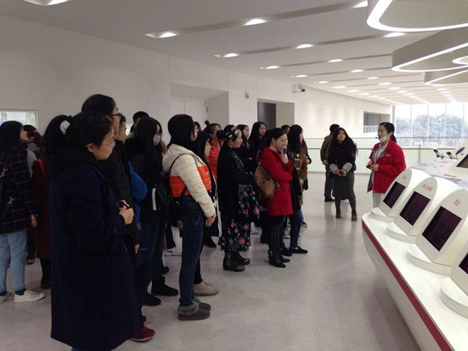 半个小时的车程将师生带到绘有鲜红Yakult(养乐多)标志的现代化工厂门口,养乐多公司的接待人员先是把大家带进了会宾室,然后讲解员为大家讲解其公司的形成历史、发展状况及产品信息和销售模式。在参观生产流程过程中,师生还就公司营销模式、产品竞争优势等向工作人员提问。在短短两个小时的参观中,师生们品尝了最新鲜的活菌饮品,观赏了科普影片,学到了不少益生菌保健知识。