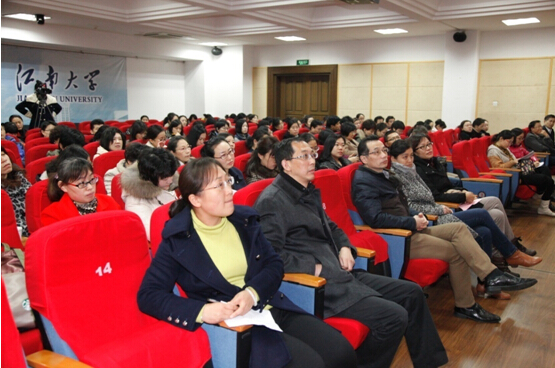 11月25日下午,“江南大学2015暑期大学英语教师海外培训汇报会”在文浩馆205报告厅如期举行。人事处张影陆处长、国交处钟芳处长、教务处曹栋处长、学院龚晓斌院长、黄城芳书记、李健雪副院长等以及我院基础部、拓展部、英语系全体教师近100人参加了此次汇报会。会议由开云手机登录入口副院长施惠平主持。