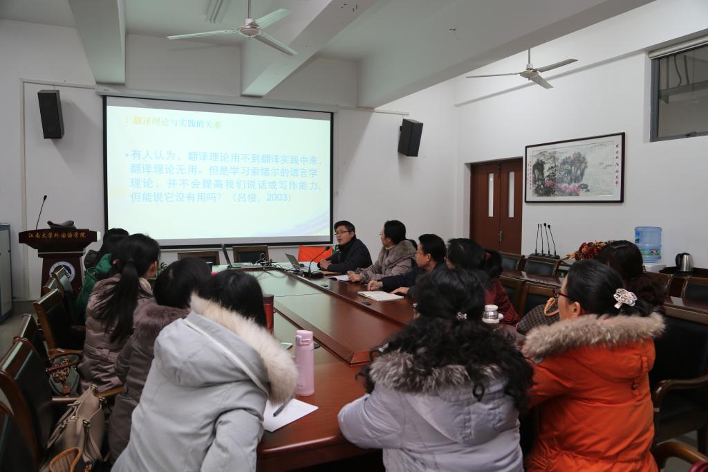 孙志祥教授的这次讲座涵盖的内容非常广泛,使在座的教师们提高了对翻译理论与翻译实践关系的认识。讲座后,孙教授还结合自己多年丰富的口笔译实践和经验和大家一起探讨了如何通过实践提升教师自身的翻译水平以及如何用理论来指导实践等话题,在座的翻译模块的大外教师们都收益匪浅,这也使大家更加期待能聆听本次系列讲座的下一场,老师们都表示通过这样的方式多学习、多交流对于提升翻译模块教师的教学质量非常有帮助。