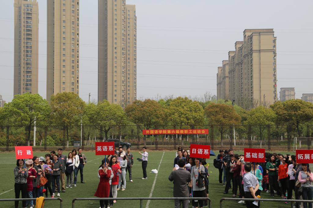 413日下午,开云手机登录入口在学校体育中心东侧小足球场举行了第六届教工运动会。运动会由学院分工会主席管纪龙主持,学院党委书记黄城芳做开幕式动员讲话。教工运动会设英语系、日语系、基础部、拓展部、行政共五个参赛团体。等合计120余人,2名学生志愿者参与运动会会务。
