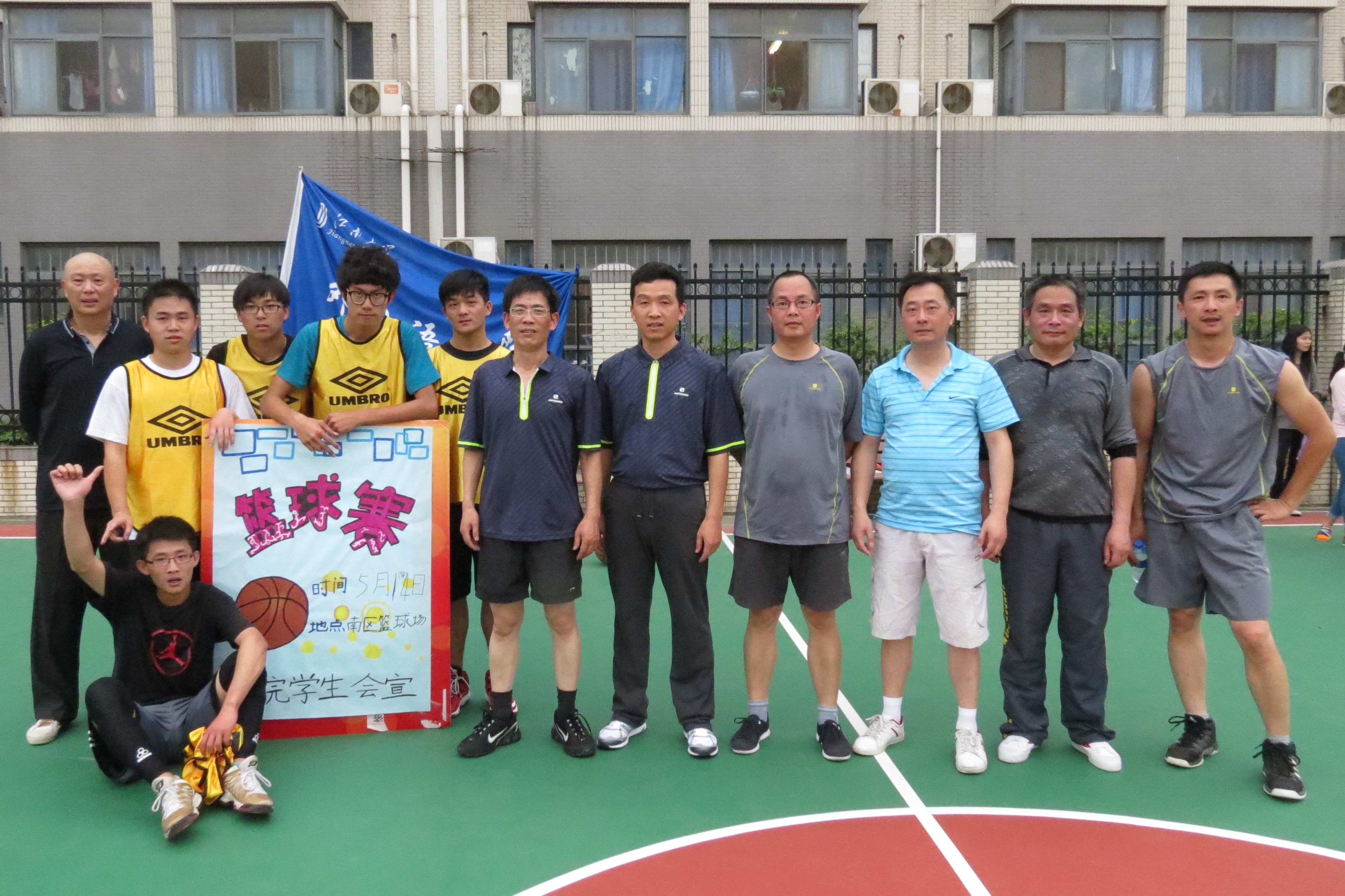2014年5月14日开云手机登录入口分工会和分团委联合学生会体育部在我校南区篮球场进行了第一场师生男篮友谊赛。外语学院篮球队的8名教师中有党委书记周建中,学院分工会主席管纪龙。赛场上,8位篮球教师与2013级篮球爱好学生展开激烈而又友好的赛场角逐。师生双方各有特色,攻守基本相当,赛场气氛热烈。