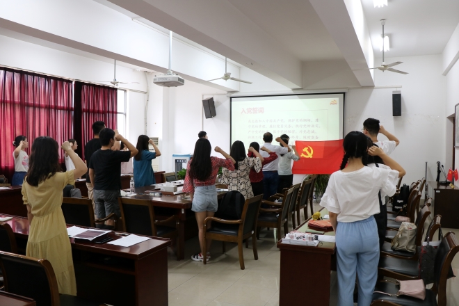 6月16日下午,为进一步加强毕业生党员的党性教育、服务意识教育、组织纪律教育,全面提升党员的党性修养,开云手机登录入口在A349会议室举行毕业生党员教育大会暨新党员入党宣誓仪式。学院党委副书记刘伯贤、分团委书记陆芳、毕业年级全体党员、今年新发展的党员都参加了本次会议,会议由分团委书记陆芳主持。