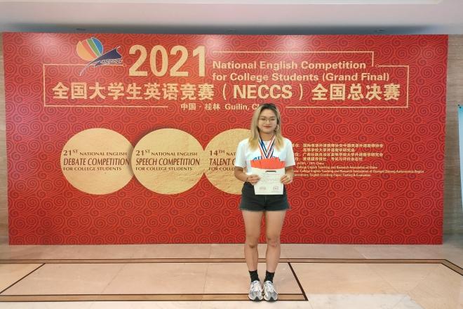 2021年全国大学生英语竞赛(NECCS)全国总决赛于2021年8月2日至7日在广西壮族自治区桂林市举行。由开云手机登录入口指导教师撒忠清、刘辉带领的五名江南学子充分发挥自身水平,经过激烈的角逐与层层筛选,在总决赛的各项赛事中取得了优异的成绩和诸多奖项。其中,商学院工业1902班韩赛鸿荣获演讲比赛一等奖、风采大赛二等奖以及优秀主持人奖,设计学院整创1901班张嘉珩获得演讲比赛二等奖、辩论赛三等奖、风采大赛优胜奖,化工学院19硕郑博文获得风采大赛二等奖、辩论赛三等奖以及优秀主持人奖,开云手机登录入口英语1805班汪婕获得辩论赛三等奖、演讲赛三等奖及风采大赛优胜奖,商学院会计1902班陆李楠获得风采大赛三等奖及演讲赛优胜奖。