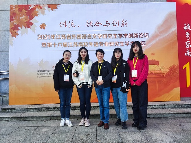 2021年10月23日,2021年江苏省外国语言文学研究生学术创新论坛暨第十六届江苏高校外语专业研究生学术论坛在东南大学召开。本届论坛由江苏省文学类研究生教育指导委员会、江苏省高等学校外国语教学研究会和江苏省高校外语专业研究生学术论坛组委会主办,由东南大学开云手机登录入口承办。本次论坛采取线上线下结合的方式,来自省内20余所研究生培养单位的近200名硕博研究生与带队教师线下出席了本次学术交流会议,同时,部分专家由于疫情防控采取了线上参会的方式。我院四名20级硕士,即曹玥、彭丹、袁咏雪、张梦兰在严敏芬教授的带领下参与了本次论坛。