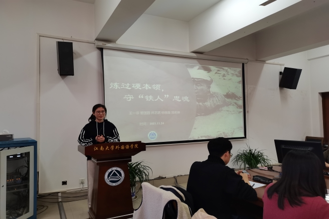 接着,举行了“礼赞赤子功勋,续写百年华章”主题演讲比赛。演讲比赛以党员功勋事迹及其体现的共产党人精神谱系为主线,共有6名团小组代表参赛。参赛同学结合个人感悟,介绍了英雄事迹,歌颂了榜样力量。董俣彤同学分享了“铁肩担道义,精神启后人”李大钊的伟大建党精神;陈俊伟解读了“红色血脉,巾帼英雄”——赵一曼的英勇抗战精神;王一菲同学讲述了“炼过硬本领,守铁人忠魂”王进喜的铁人精神;周叶苛同学分享了“一人千古,千古一人”邓小平的改革开放精神;曹逸同学讲述了“于国有为,敏言慎行”中国氢弹之父——于敏的两弹一星精神;张赛同学介绍了“心有复兴志,细嗅梅沁香”张桂梅的感人事迹与无私精神。在演讲过程中,为提高同学的学习与参与热情,还穿插了红色歌曲、红色影视片段和党史知识的互动答题环节,活跃了现场气氛。蔡召冲老师、鲍国庆老师、陆芳老师及学生评委张龙飞同学根据现场表现对同学们进行打分。