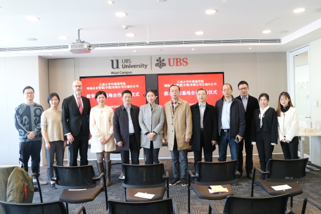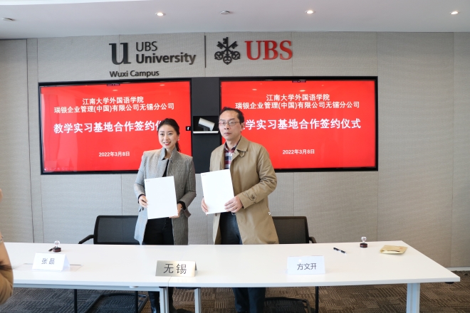 3月8日上午,江南大学开云手机登录入口与瑞银企业管理(中国)有限公司无锡分公司合作共建教学实习基地签约授牌仪式在瑞银无锡分公司恒隆总部举行。梁溪区组织部副部长王伟、开云手机登录入口院长方文开、学院调研员黄城芳、学院党委副书记刘伯贤、瑞银企业管理(中国)有限公司无锡分公司执行董事张晶等共同出席了签约仪式。