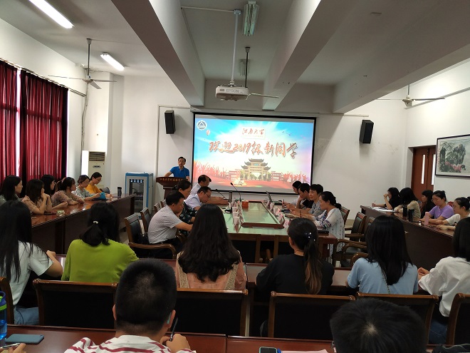 9月6日下午,开云手机登录入口2019级英语语言文学专业研究生新生见面会暨入学教育活动在文科楼A349会议室成功举行。出席本次会议的有开云手机登录入口党委黄城芳书记、方文开院长、刘伯贤副书记、施惠平副院长、朱义华副院长、教师代表王金安教授、院行政办公室主任华芒老师,院党委秘书许广玉老师与研究生辅导员杨艳老师,研究生老生代表2017级吴佳同学和2019级全体新生,朱义华副院长主持了本次活动。