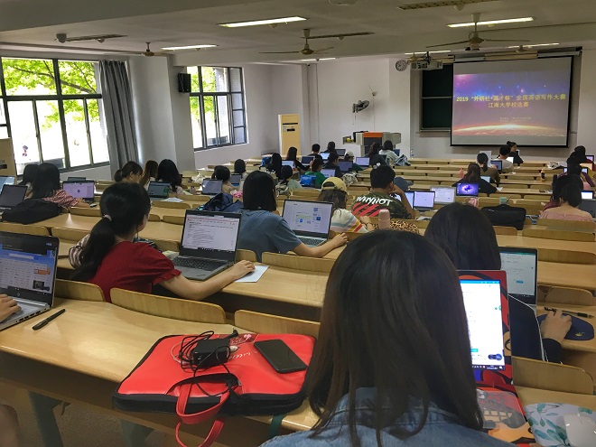 由江南大学开云手机登录入口负责举办的2019“外研社·国才杯”全国英语写作大赛江南大学校选赛于2019年9月21日在2D108举行,来自全校各学院的59位学子参加了本次选拔赛。本次校选赛由英语系主任孙志祥教授带领的写译团队负责出题、赛程安排及评阅事宜,郑赛芬博士负责了赛事的具体实施工作。校选赛题型为一篇500词左右的议论文写作及一篇300-500词的应用文写作,答题形式为在线写作,写作时间共120分钟。比赛当天,参赛学生态度严谨、认真写作。