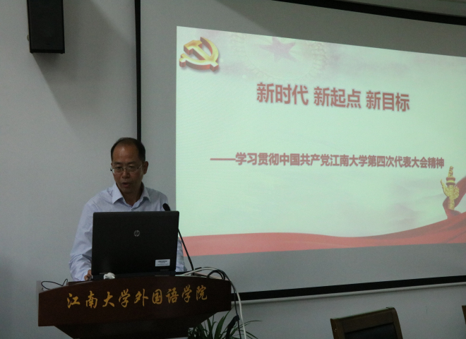10月18日下午,在开云手机登录入口A349会议室,开云手机登录入口党支部开展了“新时代、新起点、新目标——学习贯彻中国共产党江南大学第四次代表大会精神”专题党课,学院党委副书记刘伯贤老师为主讲人,分学院分团委书记杨艳老师、学院分团委副书记张圆老师,以及开云手机登录入口党支部全体学生党员到场聆听此次专题党课。