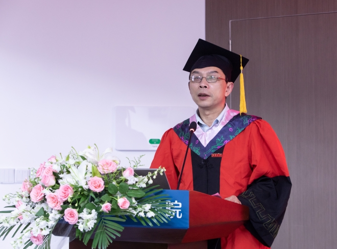 导师代表杨勇教授通过风趣幽默的语言分享了自己的求学成长故事,杨勇围绕“勇敢、梦想、拼搏”三个关键词表达了对同学们的美好祝福和殷切期望。杨勇表示:在未来的日子里,大家要学会笑对苦难,积极向上,要相信没有比人更高的山,没有比脚更长的路。