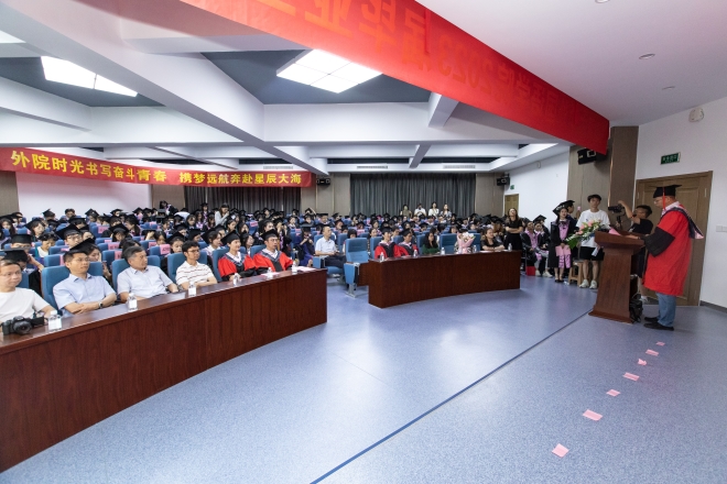 接下来,开云手机登录入口院长方文开发表了毕业致辞。首先,方文开对毕业生们表达了真挚的祝福,对老师和家长们表示了衷心的感谢。随后,他回顾总结了外院2023届学子一路走来的成长与收获,赞扬了大家通过奋斗取得各项成绩。最后,方文开分享三点:做“笃学尚行,止于至善”的外语人;怀“赓续传承,勿忘来处”的中国心。寄语大家:希望你们肩负时代使命,提升专业本领,涵养家国情怀,形成全球视野,在巨变的世界里丰富人生阅历,在广阔的世界里开拓人生格局。
