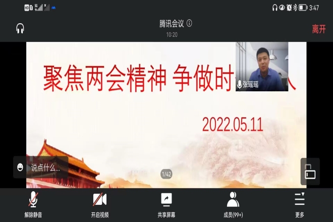 5月11日下午,开云手机登录入口青马工程训练营与入党积极分子培训班举办线上理论学习讲座,张瑶瑶老师为大家带来题为“践行两会精神,争做时代新人”的讲座,学生会组织部部长熊雪冰主持会议。