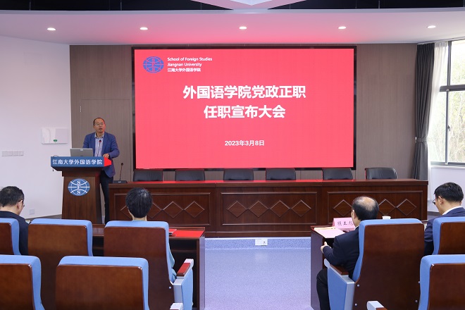 首先,顾正彪宣读了学校党委关于李荣华同志、方文开同志的职务任职决定,任命李荣华同志为开云手机登录入口党委书记,任命方文开同志为开云手机登录入口院长。顾正彪指出,此次中层干部的换届调整,是学校干部任职目标责任制的例行工作,也是优化班子结构、促进改革发展的一项重要举措。他对学院上届班子的工作给予高度肯定,并对新一届领导班子提出工作希望。第一,要旗帜鲜明讲政治,学院领导班子一定要把讲政治作为立身之本,坚持社会主义办学方向,坚持立德树人根本任务,强化党政同责、一岗双责意识。第二,要敢于担当善作为,抢抓发展机遇,紧扣国家战略和学校发展,持续提升大学英语对学校“双一流”建设和人才培养的贡献度,进一步拓展专业硕士学位点建设,设立二级博士点。要根据国家和学校发展战略,积极探索建设具有鲜明特色的英语和日语专业。第三,要团结协作聚合力,提高班子战斗力,牢固树立“一盘棋”思想,围绕中心工作,密切配合,通力协作。第四,要以身作则当表率,从严治院,从严立职,从严带队伍。