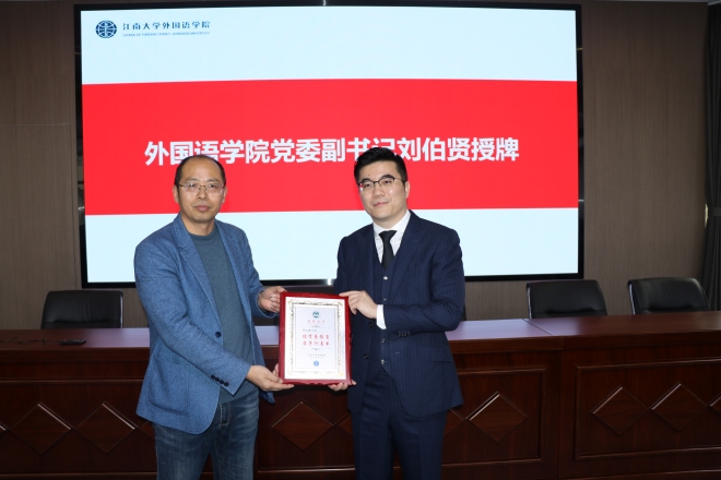 学院党委副书记刘伯贤为葛俊君授牌
