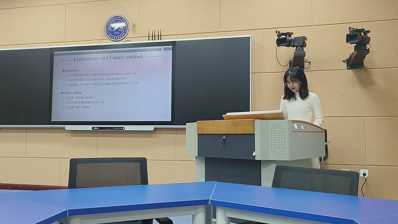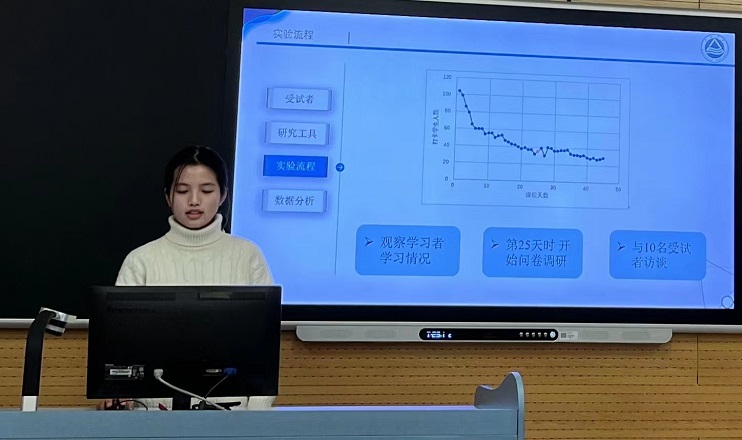 12月9日下午,论坛围绕二语习得与外语教学研究、话语分析研究、译者行为研究、跨学科融合、文学与科技等三个方向开设了五个分论坛。我院研究生在分论坛发言中积极展示自己的研究成果,与点评专家和听会同学展开热烈讨论,听取各方建议,进一步完善自己的研究;谢竞贤老师、扬州大学周永老师、南通大学宋建清老师一起同参加“话语分析研究”分论坛的同学就宣读论文开展了宏观与微观的学术探讨与交流。分论坛结束后,论坛闭幕式如期举行。扬州大学原副校长、外国语言文学一级学科负责人俞洪亮教授致闭幕辞,他向各位硕博研究生提出要立足时代、立足中国立场开场学术研究工作,建议同学们要多参加学术交流,不断碰撞出思维的火花,以更加蓬勃的精神投入今后的学术研究中。最后论坛举行了优秀论文颁奖典礼。我院学生认真参与,表现优异,王婷同学获得本次论坛二等奖,方漩与胡婷婷同学获得三等奖。