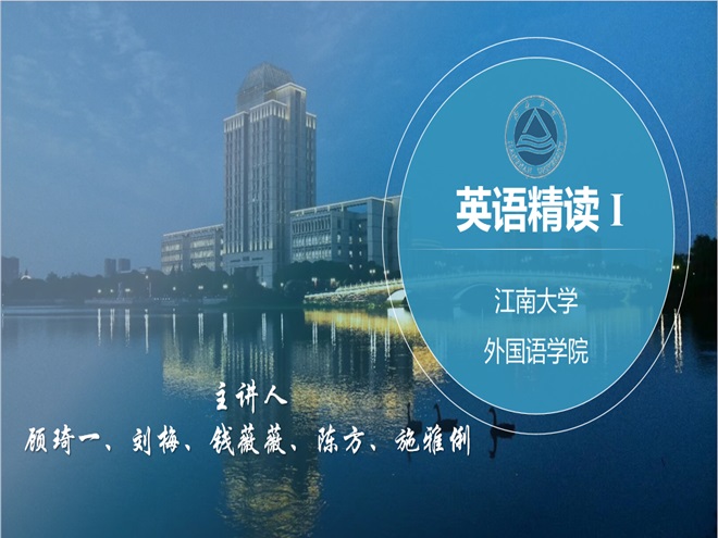 《英语精读I》是英语专业基础课,江苏省一流本科课程,江南大学课程思政示范课程。课程运用“4C阅读模式”推动学生从文本理解(Read to Comprehend)、批判思维(Read to Critique),到强化巩固(Read to Consolidate)、创新实践(Read to Create)层层推进,提升学生高阶思维能力和创新实践能力,增强了学生“理解中国、沟通世界”的英语综合素养。