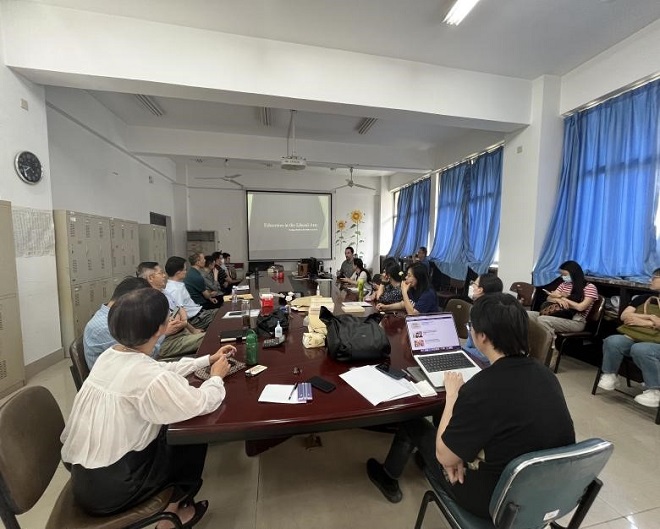 5月22日下午,开云手机登录入口“英语系教研共同体”系列讲座第五场,在文科楼B307成功举办。该讲座是系列讲座中首场由外籍教师主讲,中外教师围绕“新文科”背景下“课程设置”、“专业培养”、“案例研究”等展开热烈探讨。