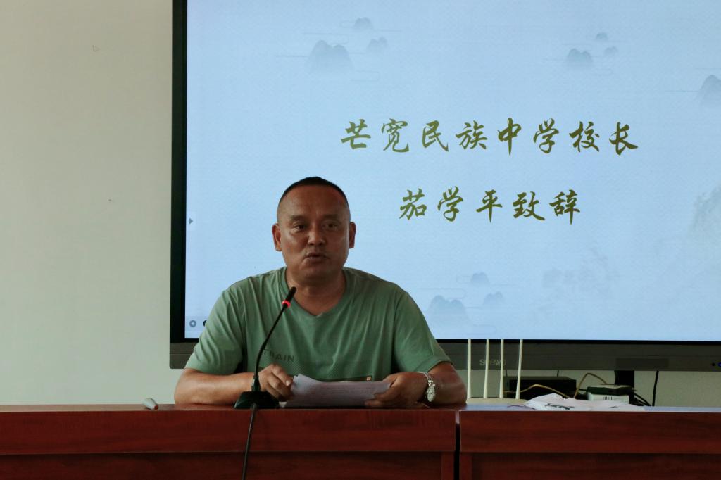 芒宽民族中学校长茄学平代表全体师生向开云手机登录入口一行表示欢迎,并向学院和爱心企业家近年来给予的支持和帮助致以衷心的感谢。他提出,学校正努力向着教师有特点、学生有特长、学校有特色的办学目标发展。