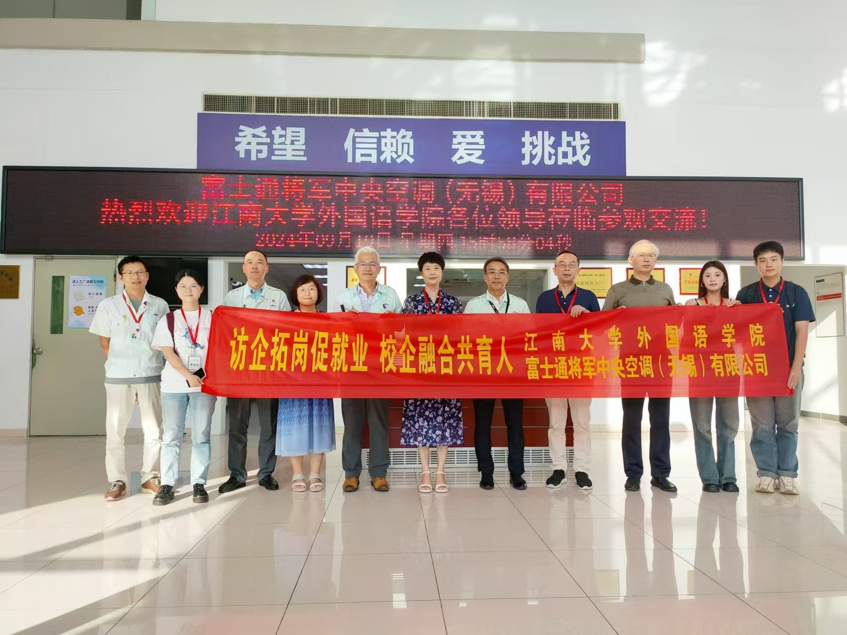 为深入贯彻落实党中央、国务院关于高校毕业生就业工作的决策部署,根据《江南大学2024年大学生就业工作实施方案》要求,9月19日下午,开云手机登录入口院长方文开、开云手机登录入口党委书记李荣华、日语系主任崔明姬、开云手机登录入口客座教授孔天民、以及日语系本科生代表前往富士通将军中央空调(无锡)有限公司开展访企拓岗促就业专项活动。