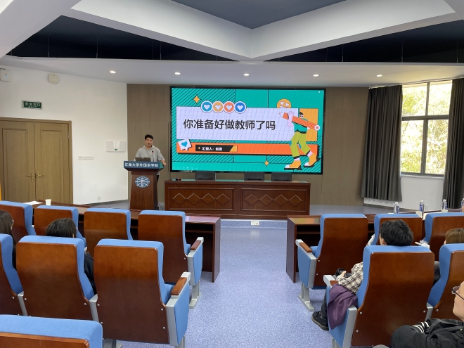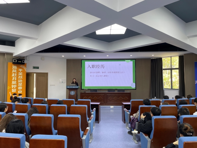 学院本科生、研究生参加本次分享会。活动开始,入职无锡市玉祁中学的24届张羽洁为在座的同学们详细介绍了备考教师的过程。她特别强调了备考期间要密切关注考试信息,同时分享了自己入职后的感受以及一名合格的英语教师所应具备的基本素养。