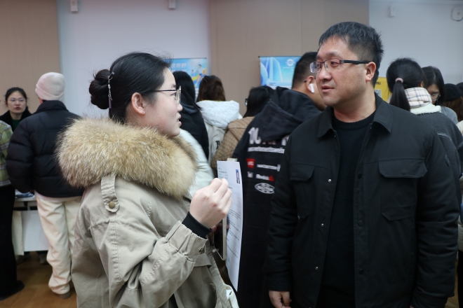 本次招聘会吸引江苏国泰华盛、新东方教育、弘元绿能、无锡金丽洁等十余家用人单位参会,涵盖教育培训、贸易、快销等诸多行业。下午14点,在君金报告厅举行企业宣讲会,参会企业依次上台,对企业情况、岗位招聘、福利待遇等进行介绍。宣讲会结束后,在学院锦洲报告厅举行招聘会,学院2025届毕业生、2026届实习生及低年级同学也来到会场学习交流。求职学生手持个人简历,与意向企业沟通交流,就岗位薪资待遇、晋升渠道、企业文化等进行详细地了解,并认真听招聘企业的意见。