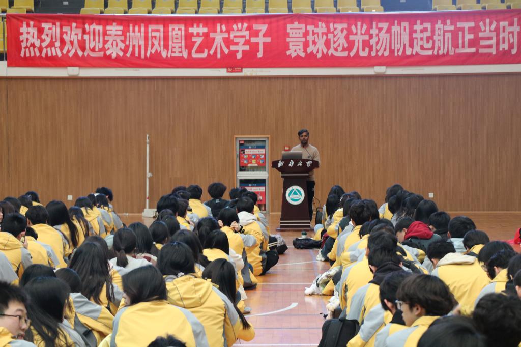 季王飞致辞。他对泰州凤凰艺术学校的师生们表示热烈欢迎,并开展 “江南好,上江南!”主题宣讲。他主要介绍了江南大学学科建设成果突出、校园生活丰富多样的基本情况;同时提及开云手机登录入口人文关怀浓厚、学习氛围良好的发展现状;还借助图片展示和生动描述,带大家领略江南大学校园风光,为全体师生勾勒出一幅充满机遇与希望的学习生活图景。