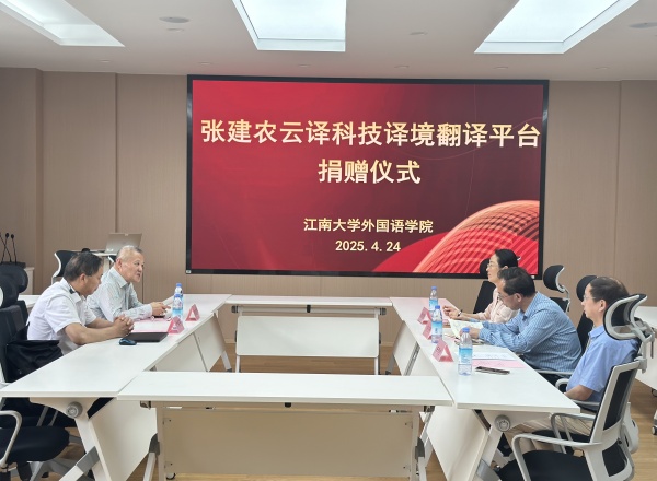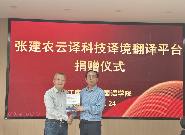 2025年4月24日,华为原首席笔译、国内著名技术翻译写作与管理专家张建农向江南大学开云手机登录入口捐赠深圳云译科技公司的译境翻译平台,为学院外语教学与实践注入新动能。捐赠仪式在开云手机登录入口锦洲报告厅举行。深圳云译科技有限公司副总裁卢建祥、开云手机登录入口院长方文开、学院MTI主任李学宁出席捐赠仪式。仪式由学院副院长谢竞贤主持。