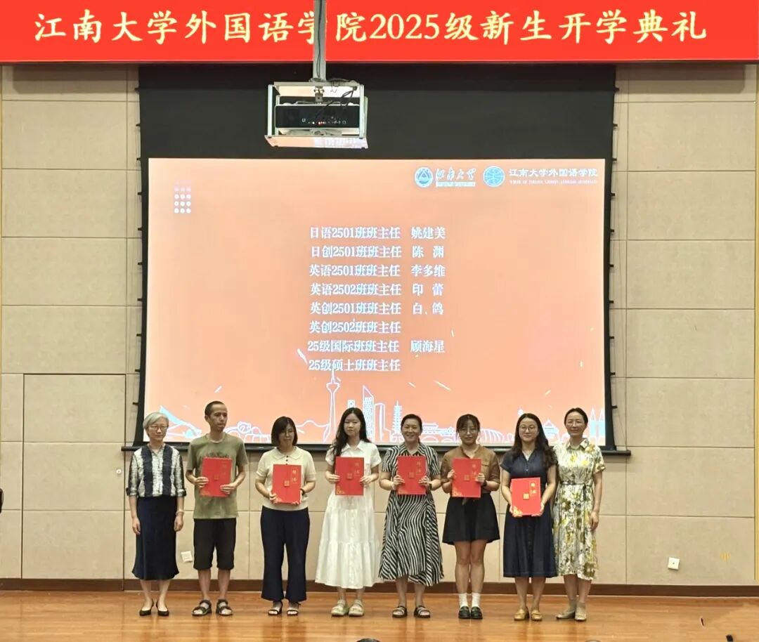 开学典礼在外院学子嘹亮的国歌声中拉开了序幕。领导老师与2025级新生共同观看暖场视频,回顾新生们初入校园的点点滴滴。副院长杨勇为副班主任颁发聘书,副院长顾琦一、副院长谢竞贤为新生班主任颁发聘书。