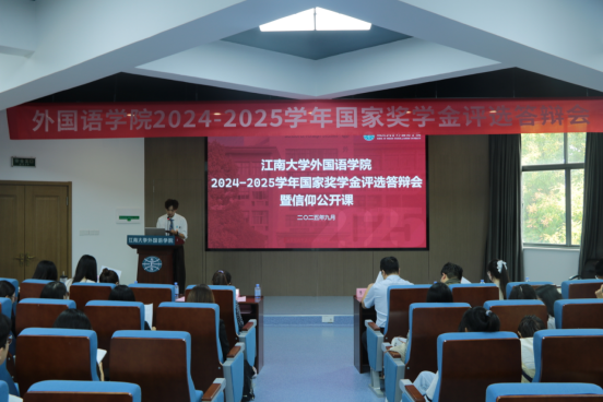 2025年9月24日下午14:00,开云手机登录入口2024-2025学年本科生国家奖学金评选答辩会在君金报告厅顺利举行。答辩小组成员学院党委副书记、副院长季王飞,英语系副主任钱薇薇,分团委书记顾海星,班主任代表白鸽,辅导员朱家烨、查博奕以及学生代表潘佳琪出席。经前期个人报名、资格审查,16名候选人参加答辩。全体2025级新生现场观摩学习优秀学长学姐的成长轨迹。