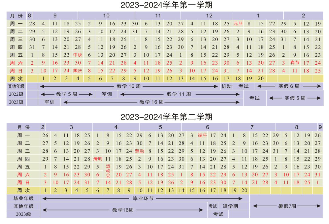 Calendar for the School Year 2023-2024